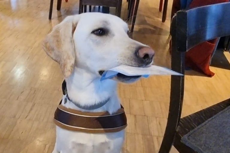 Der Hund kann wichtige Gegenstände bringen, z. B. Handy, Medikamententasche oder Trinkflasche.